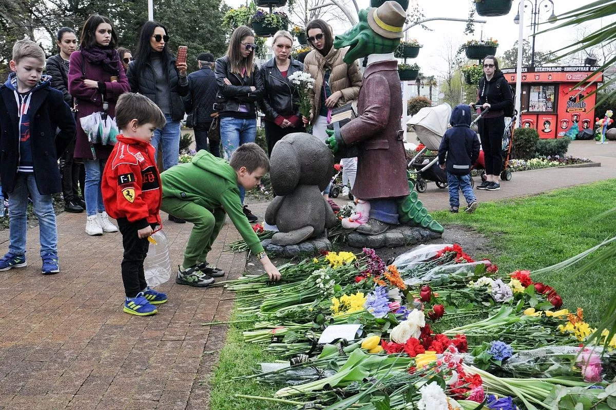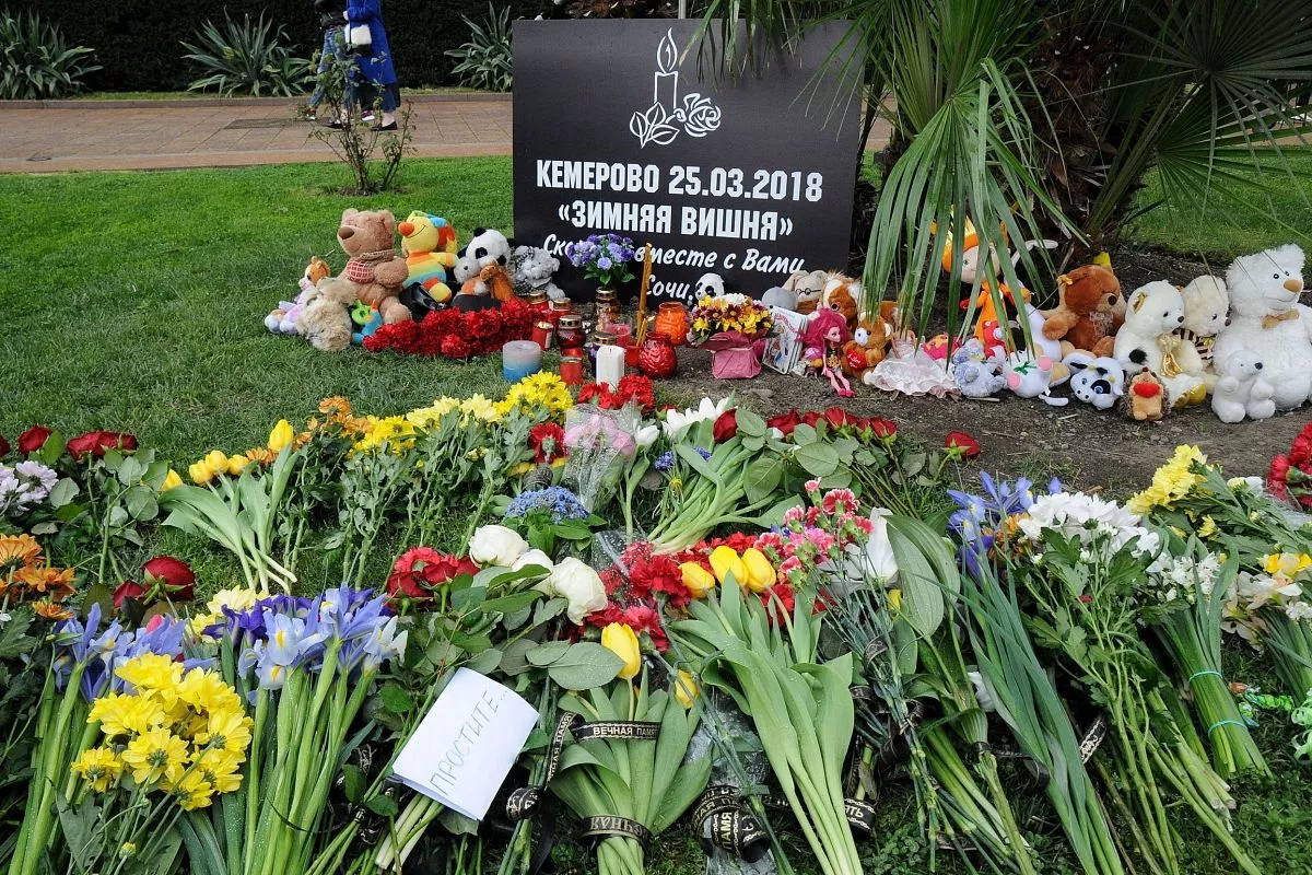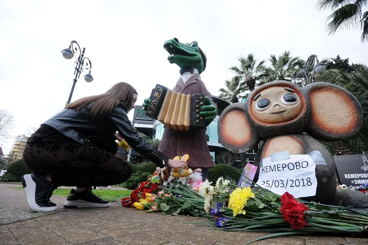 В память о трагичных событиях сочинцы организовали мемориал в самом центре города, на улице Навагинской. Рядом с фигурами Крокодила Гены и Чебурашки – появилась памятная доска с надписью «Кемерово. 25.03.2018. «Зимняя вишня». Скорбим вместе с Вами». С самого утра горожане и гости курорта несут сюда цветы и игрушки.