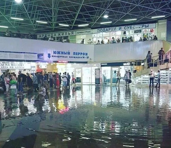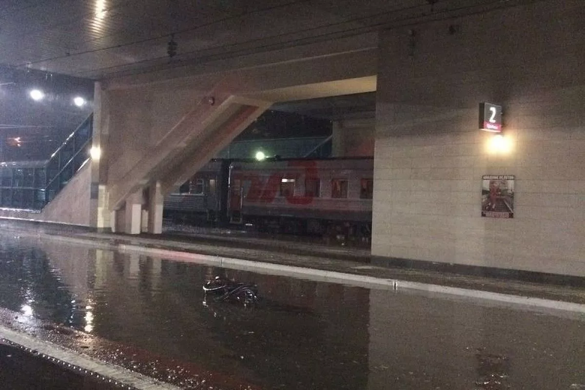 На главном железнодорожном вокзале города затопило пути.