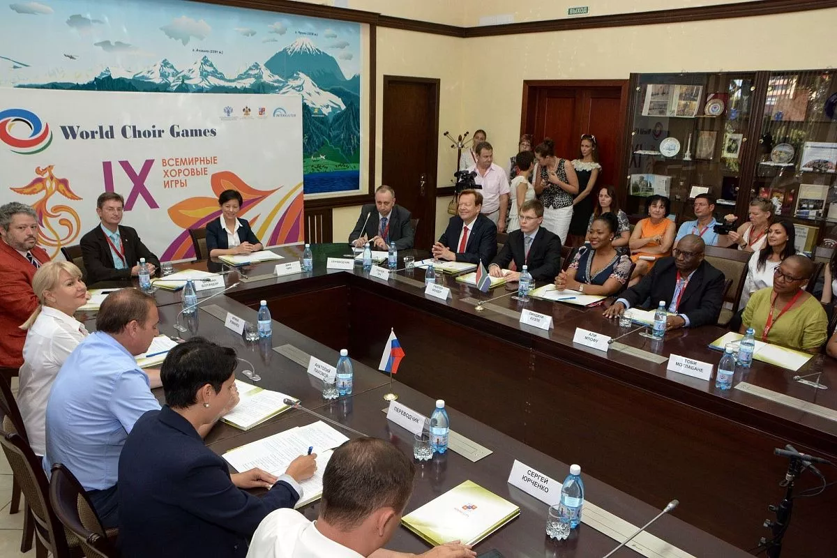 В Сочи иностранные гости встретились с представителями мэрии курорта, чтобы перенять опыт в организации музыкальных соревнований. Хотя проведение масштабных мероприятий для республики не в новинку: в 2010 году в ЮАР состоялся чемпионат мира по футболу. В честь Игр во время встречи в сочинской администрации стороны обменялись памятными сувенирами, символизирующими национальные традиции двух городов.