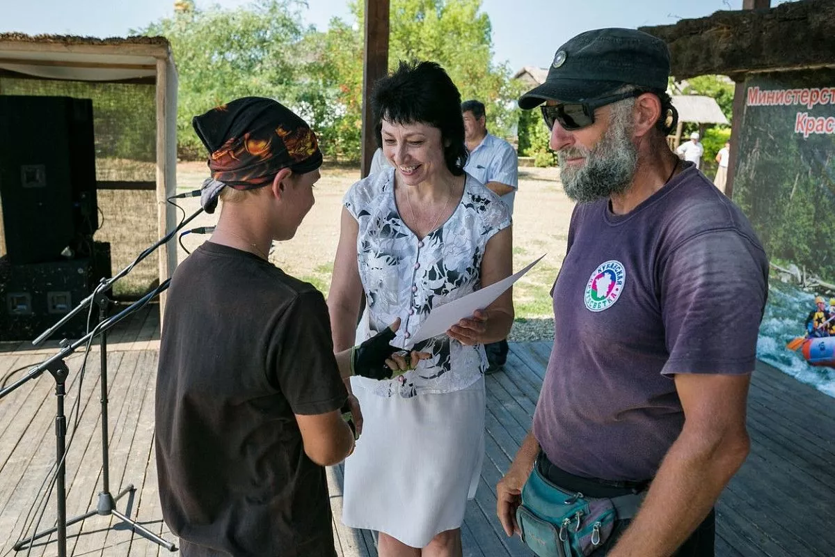 В «Атамань» встретили путешественника Константина Мержоева с юными участниками экспедиции.