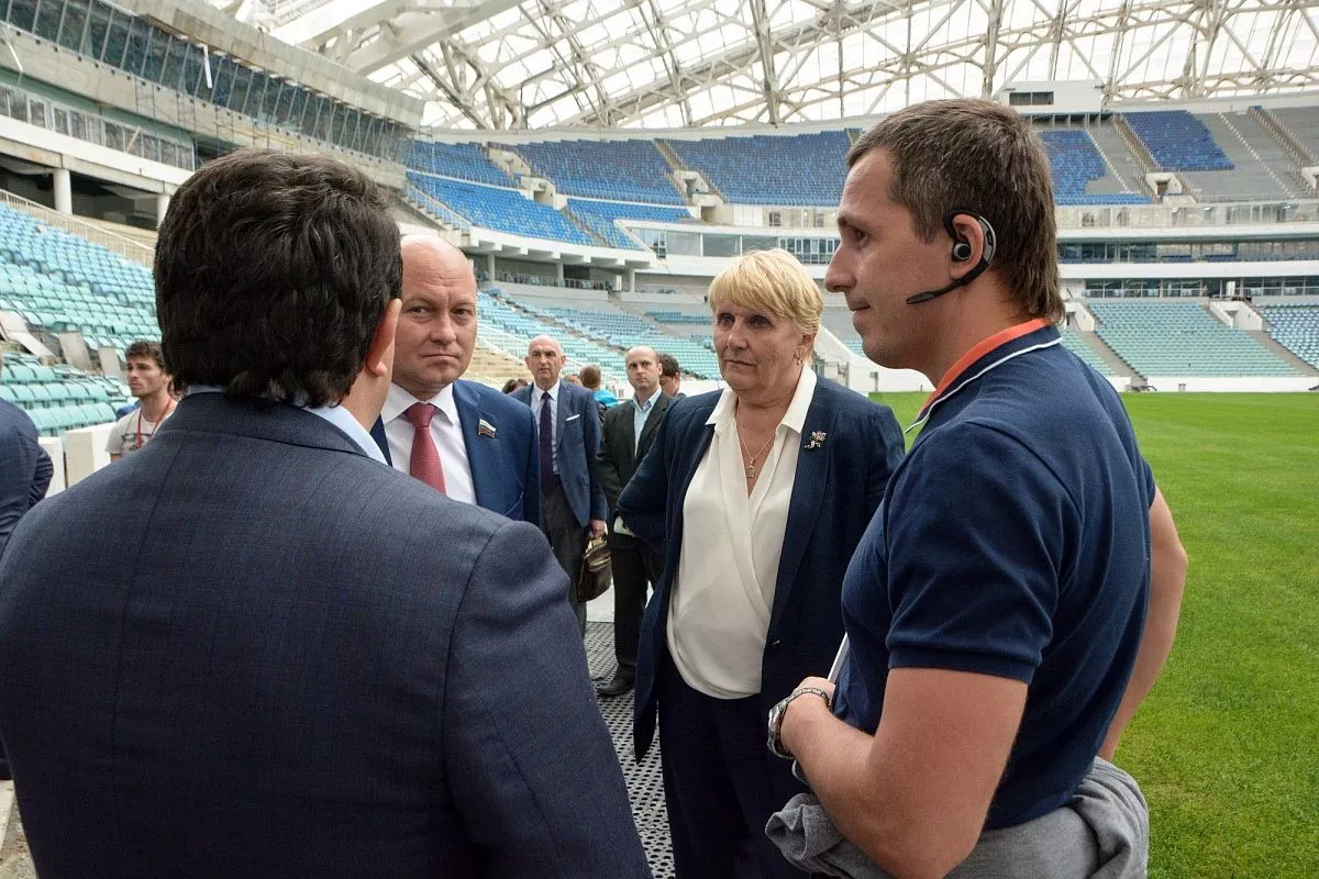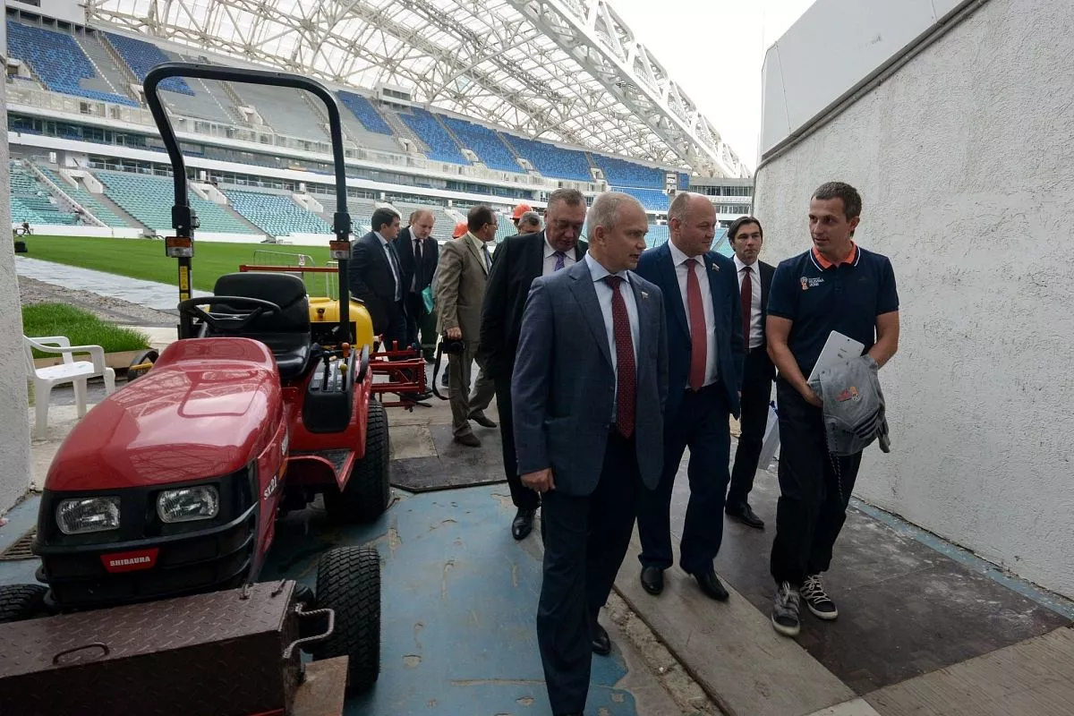 В рамках визита в Сочи сенаторы осмотрели сочинский аэропорт, предматчевые тренировочные площадки, тренировочные площадки в местах размещения баз команд и главную сочинскую арену, которой предстоит принять матчи мундиаля, - стадион «Фишт». Согласно оценке членов комиссии, Сочи практически полностью готов к приему участников и гостей мундиаля, а местный стадион «Фишт» находится на заключительном этапе реконструкции, включающей в себя адаптацию арены к футбольным матчам международного уровня. Общая стоимость реконструкции стадиона составляет 3 836,64 млн рублей, в том числе за счет средств федерального бюджета — 3 452,98 млн руб., за счет средств краевого бюджета — 383,66 млн руб.