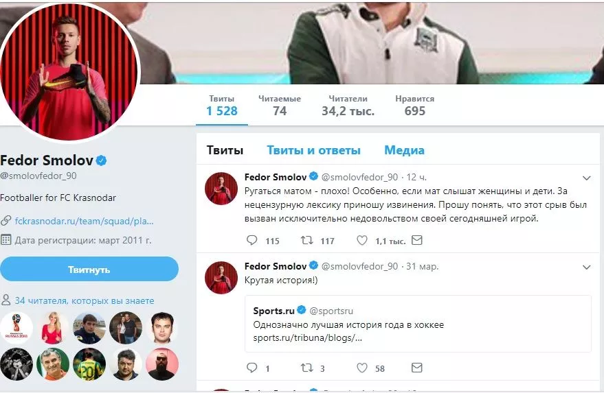 «Ругаться матом - плохо! Особенно если мат слышат женщины и дети. За нецензурную лексику приношу извинения. Прошу понять, что этот срыв был вызван исключительно недовольством своей сегодняшней игрой», - написал Смолов.