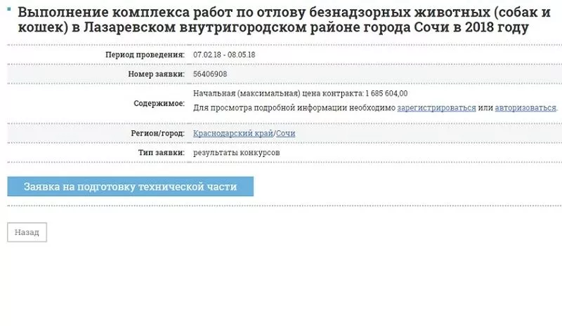 Контракт размещен на нескольких онлайн-площадках, одна из них - contract-center.ru. Заказчиком числится администрация Лазаревского внутригородского района Сочи.