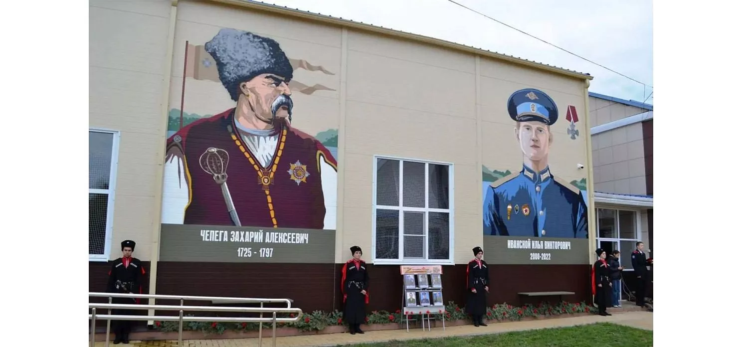 На фасадах зданий появляются муралы в честь погибших казаков. Одно из таких изображений монументальной живописи открыли недавно в Ейском казачьем кадетском корпусе в рамках масштабного историко-просветительского проекта Всероссийского казачьего общества «Казаки-герои: вчера и сегодня».