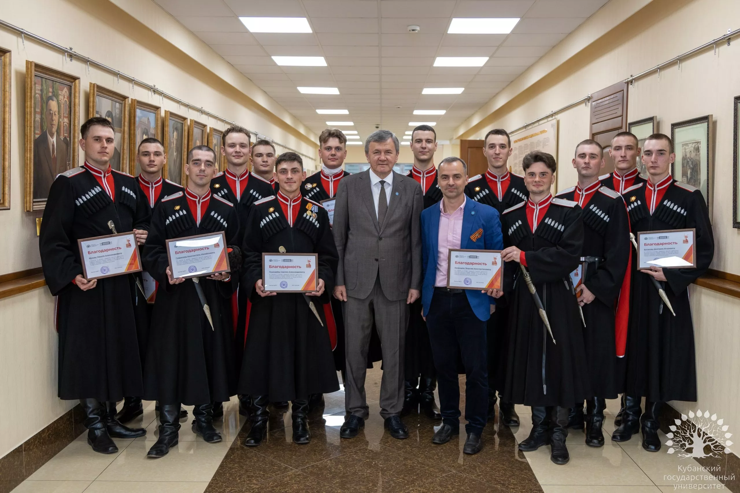 В Кубанском государственном университете «казачья сотня» успешно функционирует с ноября 2022 года. Сначала в ней состояло 12 человек, а сегодня, спустя три года, их уже 74.