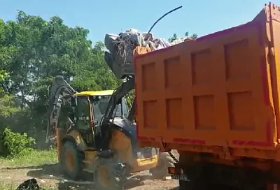 В Краснодаре убирают стихийную свалку у мкр. Гидростроителей