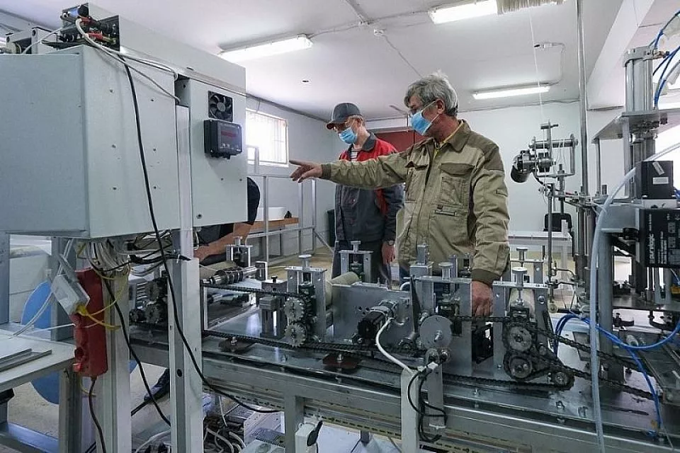Новая автоматическая линия с ультразвуковым узлом для припайки петель производит трехслойные лицевые маски из нетканых материалов. Ее мощность – 60 штук в минуту или до 75 тысяч в сутки. Оборудование разработал и собрал «КраснодарСтанкоСтроитель».