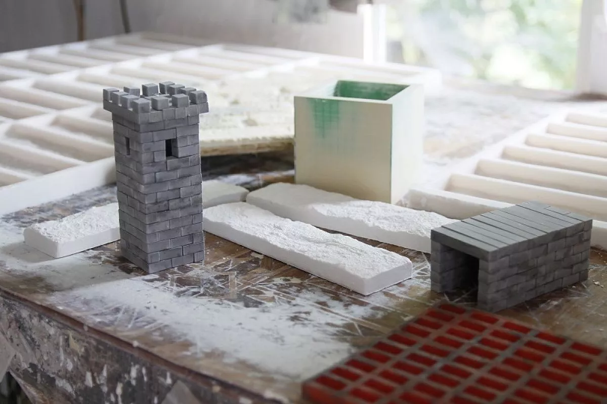 Кроме того, мастер для души пробует делать конструкторы из маленьких гипсовых кирпичиков, которые крепятся с помощью простого клея ПВА, и из них можно сделать домик или игрушечный замок. Такое импортозамещение ЛЕГО от кубанского мастера, которое может быть интересно даже взрослым.