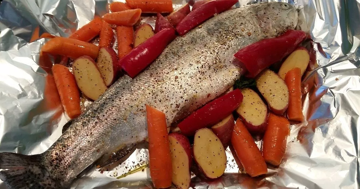 Форель в фольге с овощами обменяются ароматами во время готовки и получится шикарный ужин без лишних танцев с бубнами.