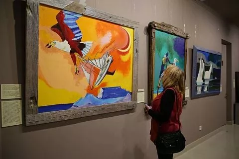 Посетителям представили 37 работ Федора Конюхова. На многих из них изображены птицы, животные и морские обитатели – друзья художника. Часто на полотнах появляются библейские сюжеты, так как сам Федор Конюхов – священник, который умеет совмещать страсть к путешествиям со служением Господу.