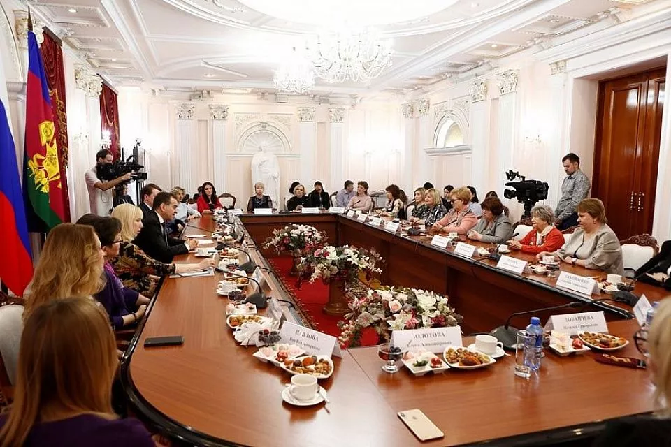 Губернатор Вениамин Кондратьев обсудил с выдающимися женщинами Кубани вопросы поддержки семьи, развития сельского хозяйства и воспитания детей.