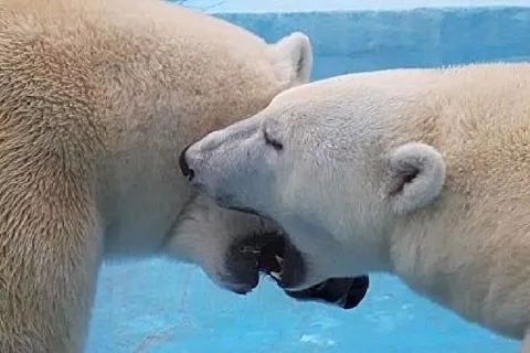 В Сафари-парке Геленджика засняли поцелуй белых медведей