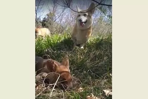 В Геленджике пара собак породы корги взяла на воспитание краснокнижных красных волчат.