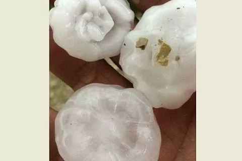 Крупный град размером почти в куриное яйцо прошел сегодня в Крымске. Местные жители поделились фотографиями и видео в социальных сетях. Осадки побили растения и автомобили.