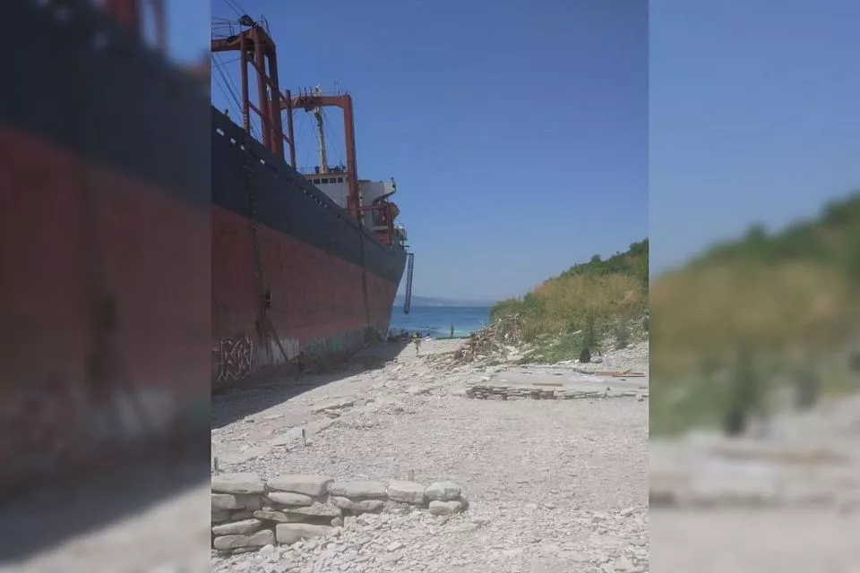 Севший на мель в Краснодарском крае корабль стал местом притяжения для туристов.