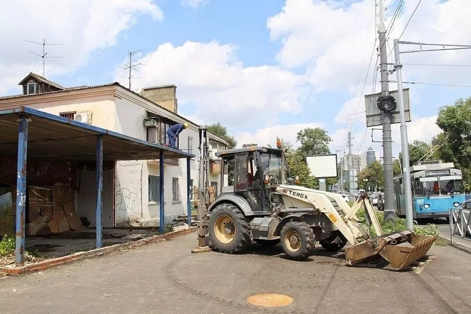 На улице Тургенева в Краснодаре сносят незаконный павильон