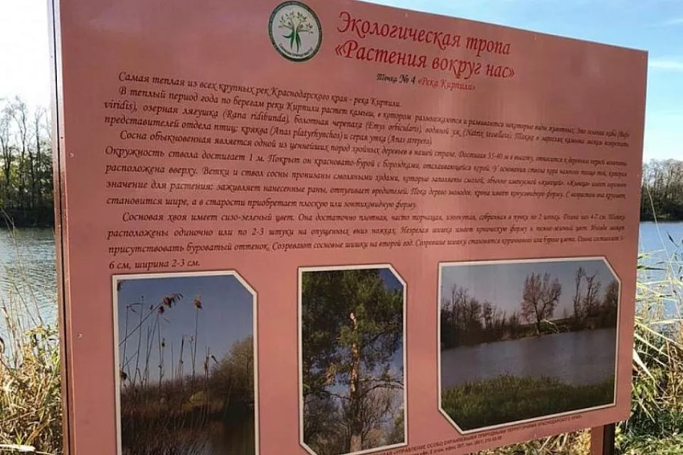 Старт мероприятиям дан в Тимашевском районе в лесопарке «Юбилейный». Вдоль экологической тропы в зеленой зоне установили первые шесть информационных стендов, а на границе особо охраняемой природной территории – первый аншлаг.