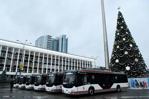 Утром 1 декабря на Главной городской площади кубанской столицы прошла открытая презентация новых троллейбусов.