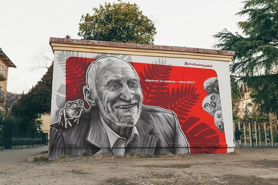 - Герой нашей новой картины не нуждается в представлении! Многие знают его с самого детства, а его голос стал визитной карточкой передачи «В мире животных». Николая Николаевича мы планировали нарисовать очень давно и даже разработали композицию на фасад девятиэтажного дома. Но события сложились иначе и сейчас он обосновался в Хосте! - написали в Instagram авторы граффити - Youfeelmyskill.