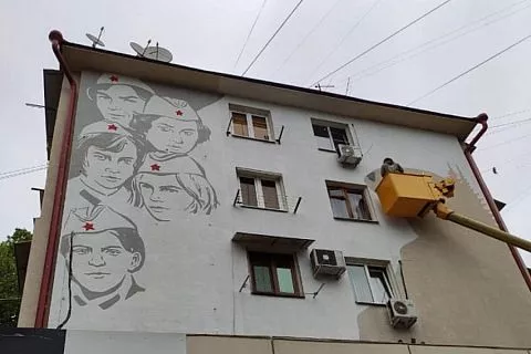 Лица героинь повести Бориса Васильева «А зори здесь тихие» изобразили на фасаде дома по улице Парковой.