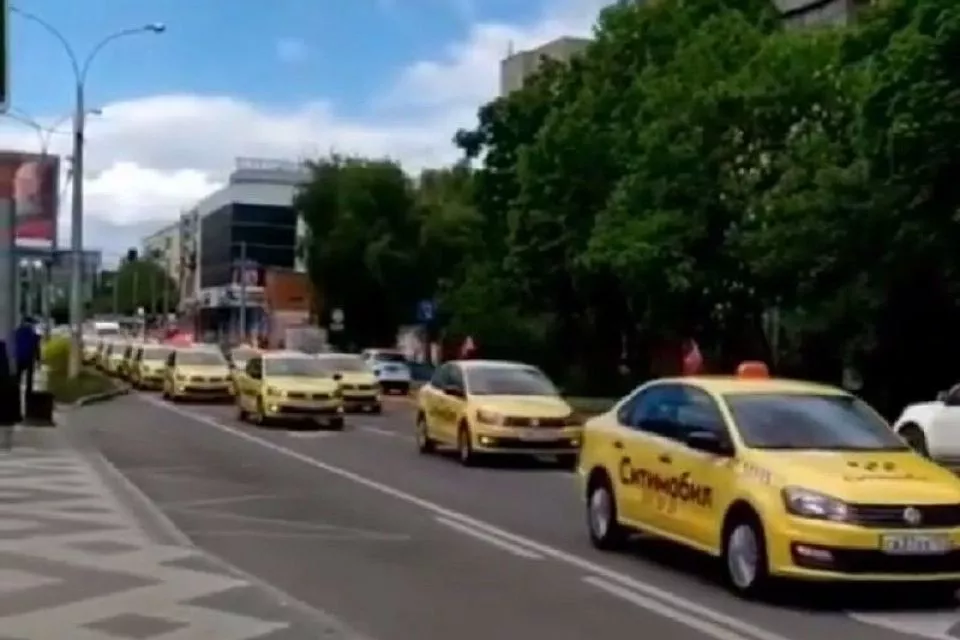В Краснодаре 9 мая такси проехали колонной. Полиция проводит проверку
