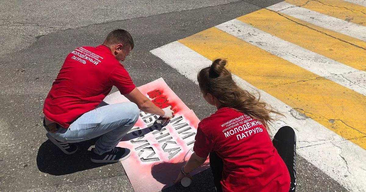 В рамках регионального проекта «Безопасность дорожного движения» представители молодежного центра города-курорта Геленджика и города-героя Новороссийска нанесли яркие предупреждающие надписи перед пешеходными переходами, чтобы напомнить детям и взрослым о соблюдении правил безопасности при переходе проезжей части.