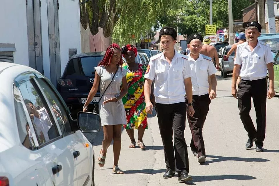 Сотрудники полиции, казаки и дружинники обследовали пляжную территорию ООО «Отдых и лечение», а также торговые ряды в районе отеля «Фотини». Были выявлены 13 иностранцев, выходцев из африканских стран, которые оказывали услуги по плетению «африканских косичек» и торговали сувенирами без документов.