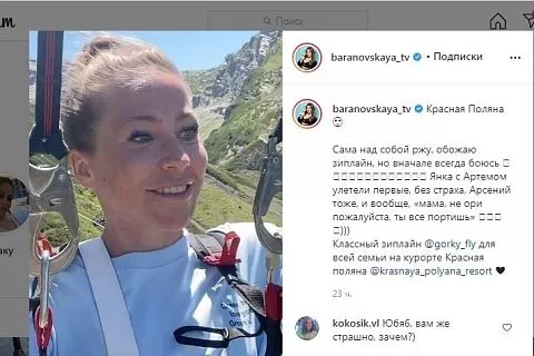 - Изначально становится страшно, и так происходит при каждом спуске. Дети улетели первые и, как мне кажется, абсолютно этого не боялись. Они вообще попросили меня не орать от страха, якобы я им портила все, - написала Барановская к видео, которое разместила в своем аккаунте в «Инстаграм».