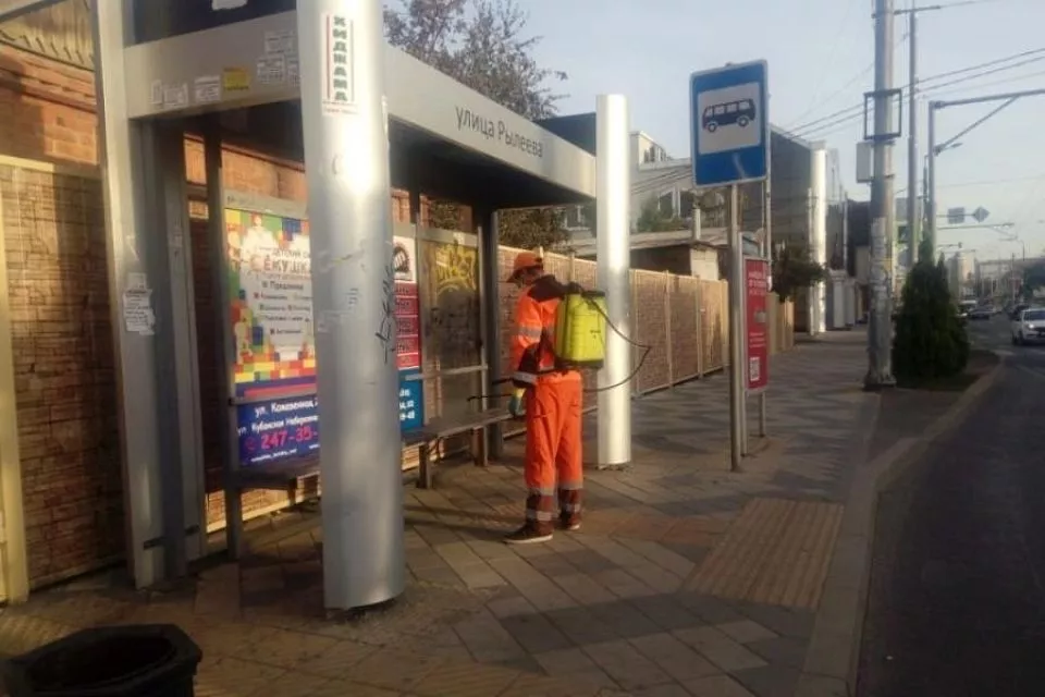 В Краснодаре за сутки дезинфицировали более 1200 остановок общественного транспорта