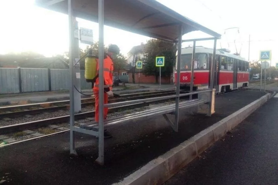 Более 1200 остановок общественного транспорта за сутки обработали в Краснодаре