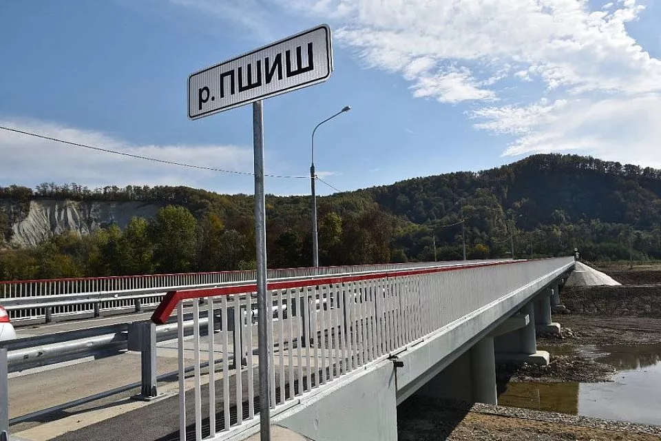 Старый мост через реку Пшиш был разрушен во время наводнения в октябре 2018 года. В оперативном режиме был восстановлен пешеходный переход. Восстановление транспортного сообщения – более трудоемкий и сложный процесс. Для сооружения нового моста был разработан индивидуальный проект.