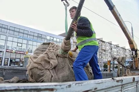 Началась пересадка лип на месте будущей трамвайной линии на улице Московской в Краснодаре