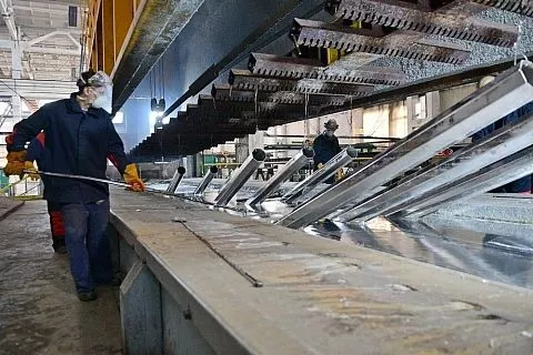 Также глава Краснодара посмотрел цех горячего оцинкования — здесь находится печь, которая вмещает 550 тонн горячего цинка, ванны для подготовки металлоконструкций для оцинкования, гидравлические подъемники для подвеса готовой металлической продукции.