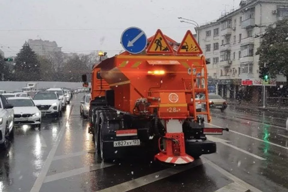 Первый снег в Краснодаре: на улицах дежурит спецтехника
