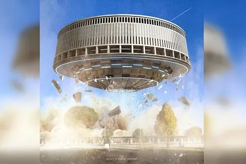 Графический дизайнер Pavel NPdesign создал иллюстрацию, превратив стадион ФК «Краснодар» в космический корабль.