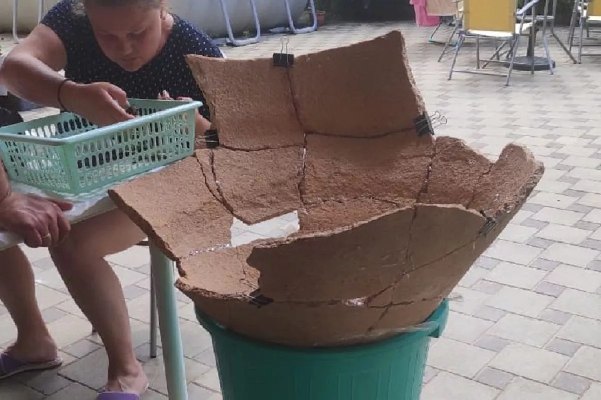 Напомним, археологи в конце мая обнаружили в Варваровке хорошо сохранившийся средневековый пифос. Он был раздавлен землей, но его удалось восстановить полностью. В таких больших сосудах хранили сыпучие продукты- зерно или орехи.