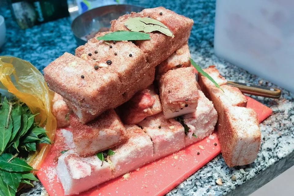 Кубанские волонтеры провели акцию по засолке 100 кг сала по старинному рецепту. Мероприятие прошло в рамках партпроекта «Женское движение «Единой России».