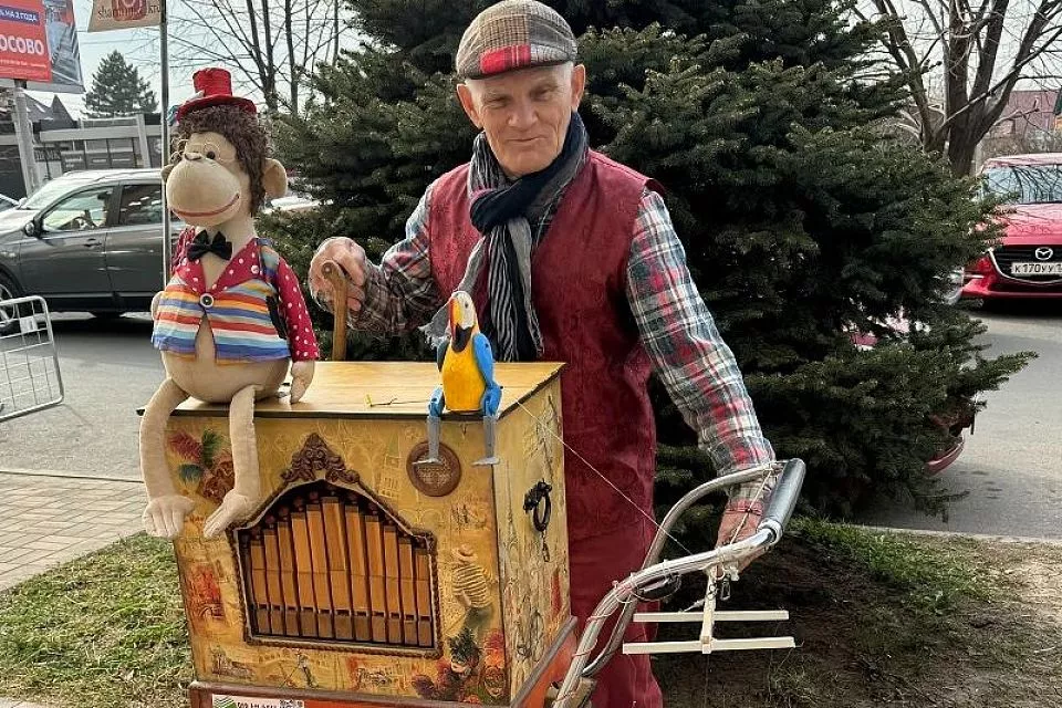 «Хочу подарить людям чудо»: пенсионер Леонид Иванов играет на шарманке на улицах Краснодара