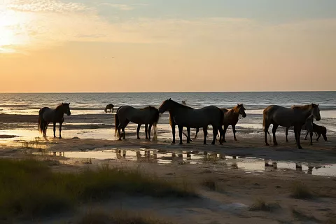 На косе можно повстречать одичавший табун лошадей. Экскурсоводы расскажут вам еще одну забавную и одновременно поучительную историю, похожую на притчу.