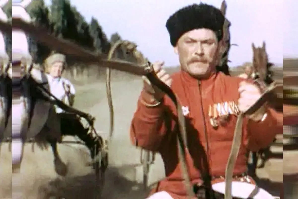 И те не поскупились, несмотря на то, что время было голодное, послевоенное, шел 1949 год. Колхозы и совхозы Краснодарского края выделили тогда для съемок немало собственных ресурсов – 12 комбайнов, а еще тракторы, две молотилки и целый табун лошадей. Были также сформированы бригады столяров, маляров, плотников и подсобных рабочих, которые помогали оборудовать места съемок – ипподром, ярмарку и «мероприятия свадебного характера».