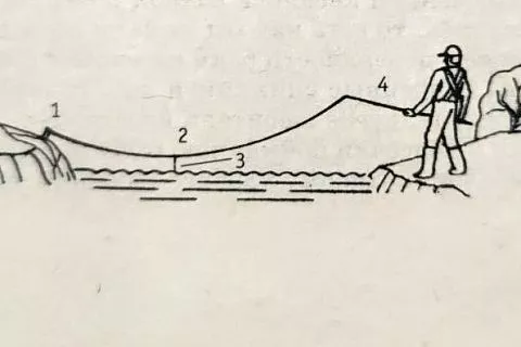 У каждого рыболова в руках спиннинг, а леска между ними связана. Смысл в том, что на леске прикреплены 1 – 2 поводка примерно метровой длины. На крючках наживка, в зависимости от вида рыбы. Процесс ужения – рыболов то и дело опускает и поднимает снасть. С таким расчетом, чтобы поводки с приманкой касались водной поверхности и сразу поднимались, как бы «тюкали» по воде.