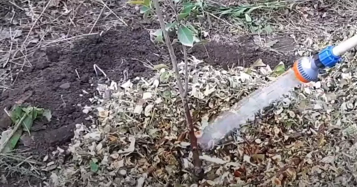 Заверши посадку устройством лунки, в которую влей 2 – 3 ведра воды. А потом замульчируй почву вокруг ствола, чтобы сохранить влагу и защитит корни от перегрева.