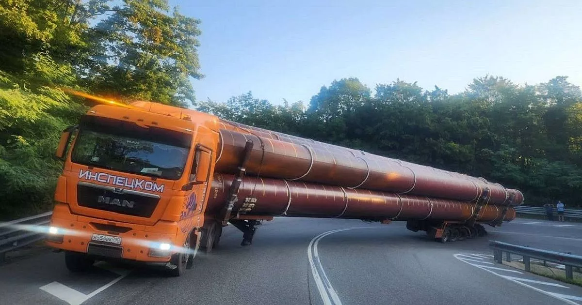 Автомобиль, перевозивший огромные трубы, не вошел в поворот на Михайловском перевале и полностью заблокировал движение между Геленджиком и Архипо-Осиповкой. Видео с места публикует местный Telegram-канал.