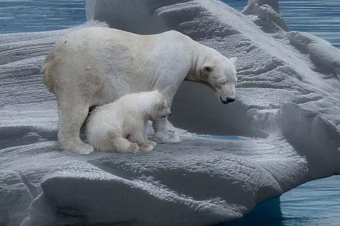 Белые медведи, ранее легко перебирались по льдам, теперь тонут, не находя следующей платформ. Их популяция сокращается, так как запасы энергии не хватает для долгих заплывов.
