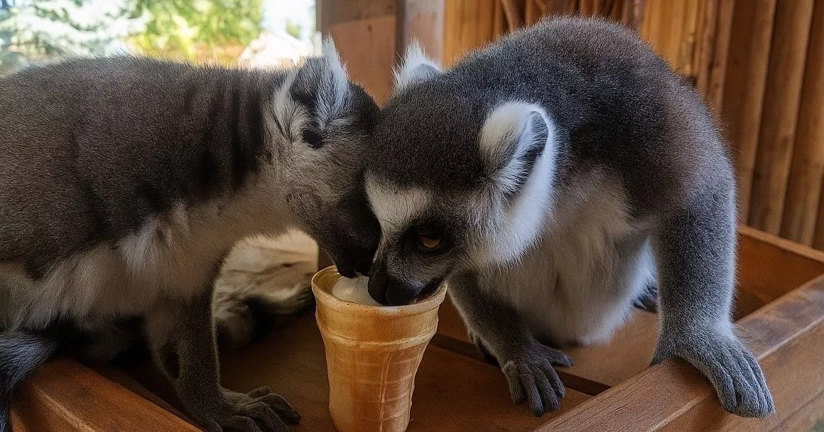В крымском зоопарке еноты и лемуры спасаются от жары мороженым