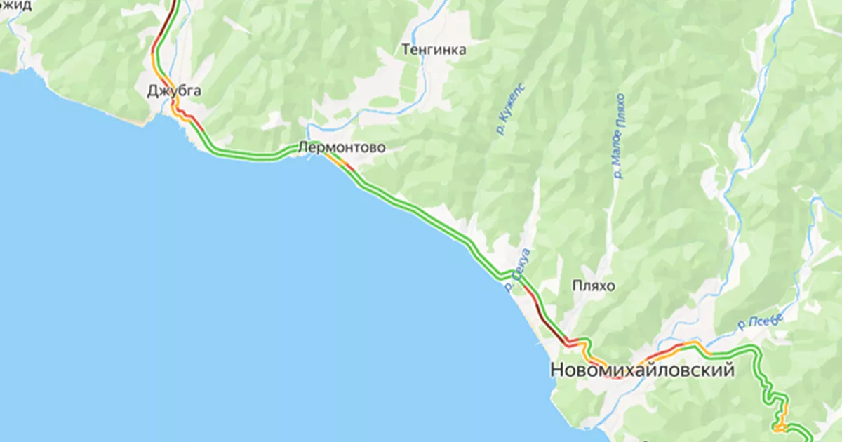 По данным «Яндекс. Карты», первый затор появился в Джубге. Машины стоят от развилки и до реки в центре поселка. В обратном направлении дорога свободна. Вторая пробка образовалась на подъезде к Новомихайловскому – по направлению к Сочи. Дорога окрашена в красный цвет и в самом Туапсе, где машины стоят в обе стороны. Больше затор со стороны Сочи. Вереница машин растянулась от Кроянского до моста через реку в городе.