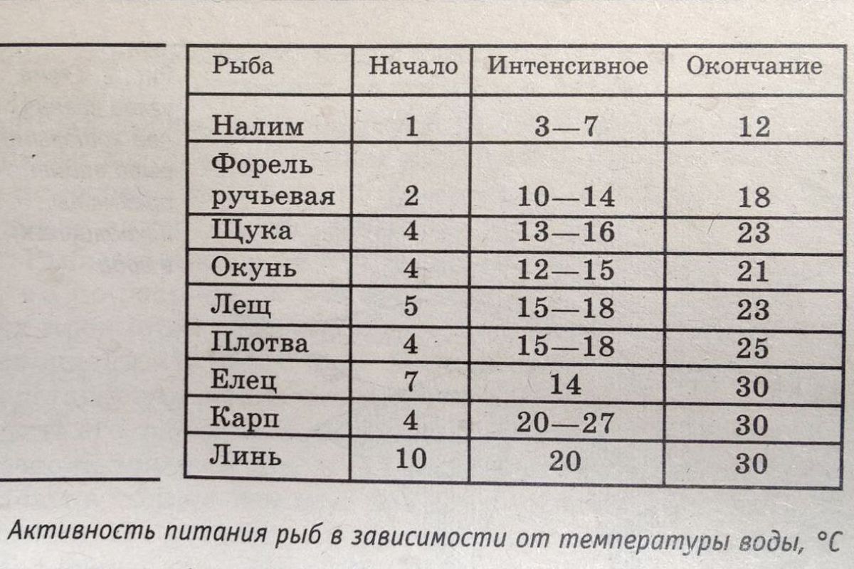 Активность питания рыб в зависимости от температуры воды.Фото: Фото из книги В. Милёнушкина.