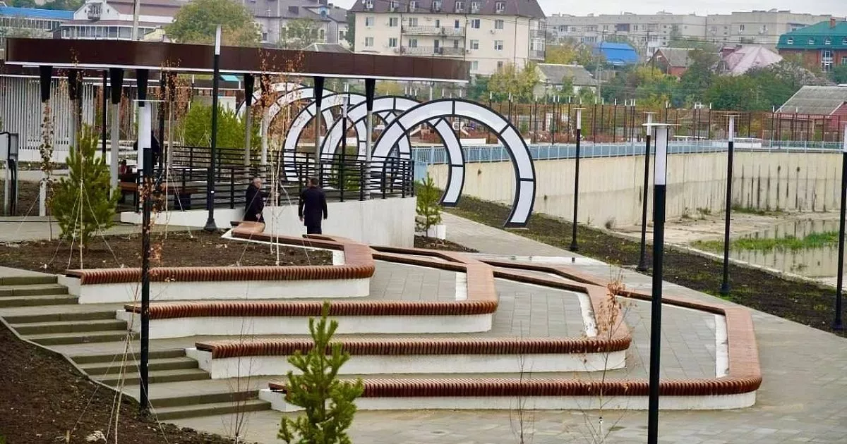 Набережная реки Адагум, КрымскРеконструкция общественного пространства проводилась поэтапно. Осенью 2024 года открылся для посещения обновленный участок общественной территории протяженностью около 500 метров. В рамках реализации второго этапа данного проекта территория рядом с рекой кардинально преобразилась. Там, где когда-то был пустырь, сейчас – дорожки, беседки, уличное кафе, детские площадки, площадка с тренажерами, установлены лавочки и урны. Есть фотозоны (круглые арки с подсветкой), открытый амфитеатр и много зелени.