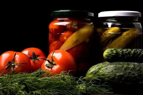 Ингредиенты: помидоры маленькие («сливка», «черри» и т.д.) - 1 кг, чеснок - 2-3 зубчика на литровую банку, укроп - 1-2 ст. л., хрен - 1 небольшой лист, перец черный горошком - 5-7 шт, перец душистый горошком - 3-4 шт, лавровый лист - 1-2 шт, свежий имбирь - 2-3 см корня, морская крупная соль - 2 ст. л., сахар - 1 ст. л., уксус 9% - 2 ст. л., вода - 1 л.