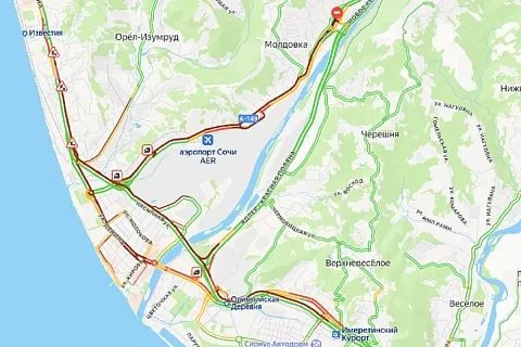 Плотные заторы образовались утром в Адлерском районе курорта.